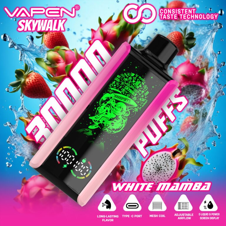 VAPEN SKYWALK 30K Disposable Vape offers up to 30,000 puffs, rechargeable battery, rich flavors, and smooth vapor. Perfect for long-lasting vaping performance.
