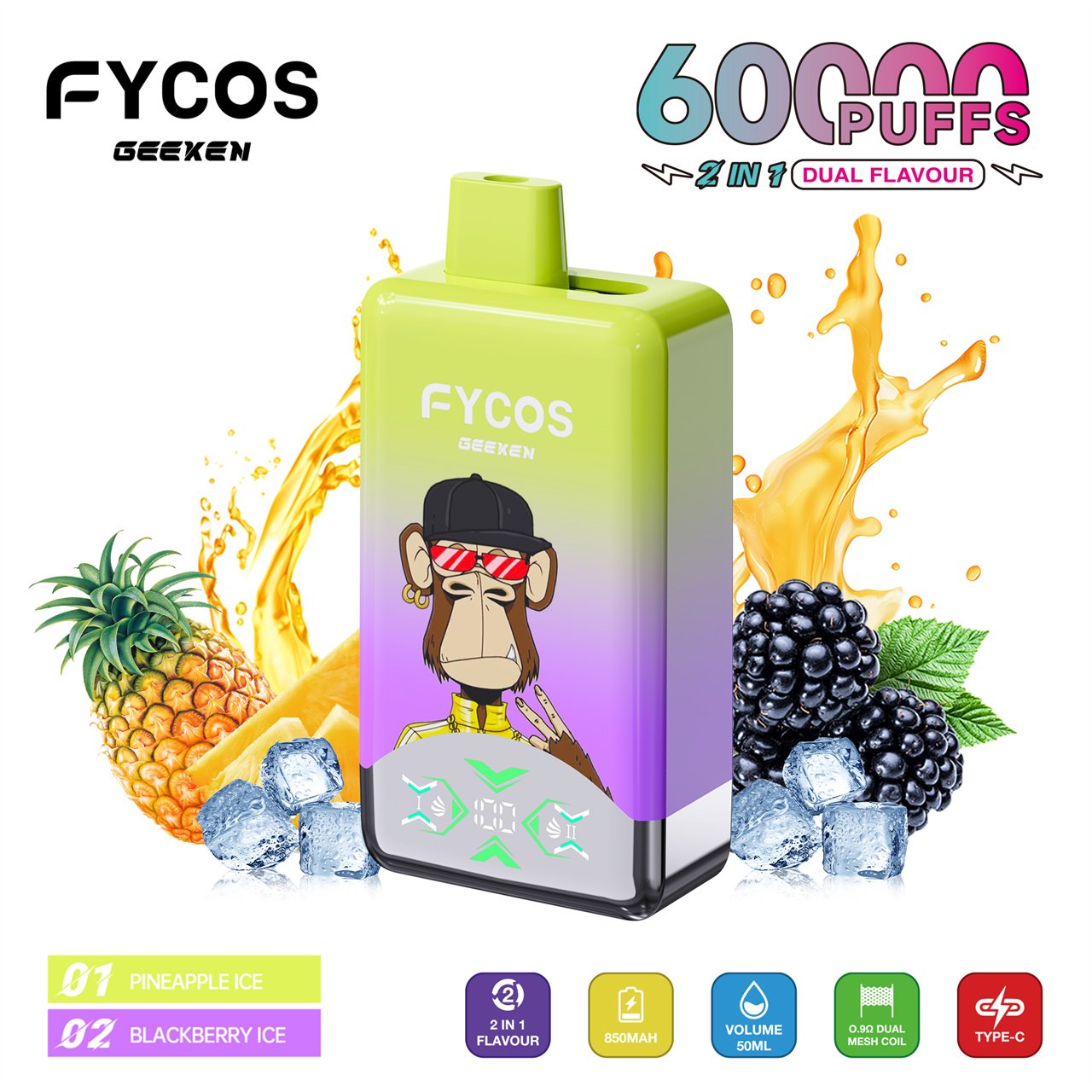 FYCOS Dual Flavors 60K Puffs Disposable Vape for Premium Vaping