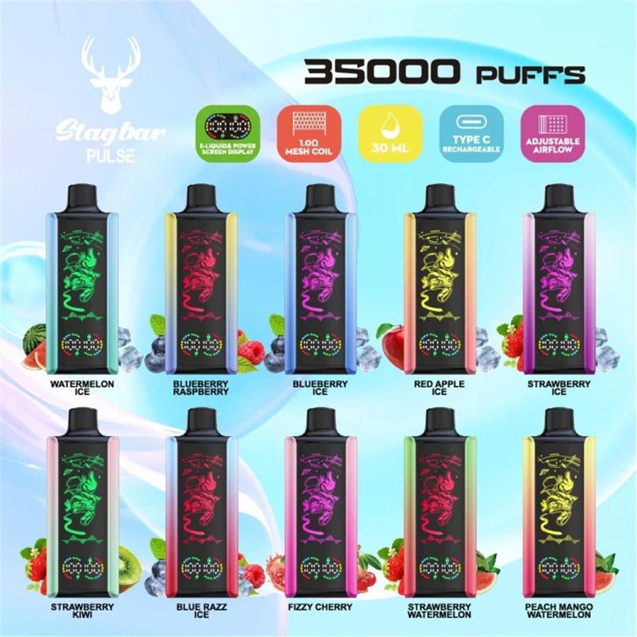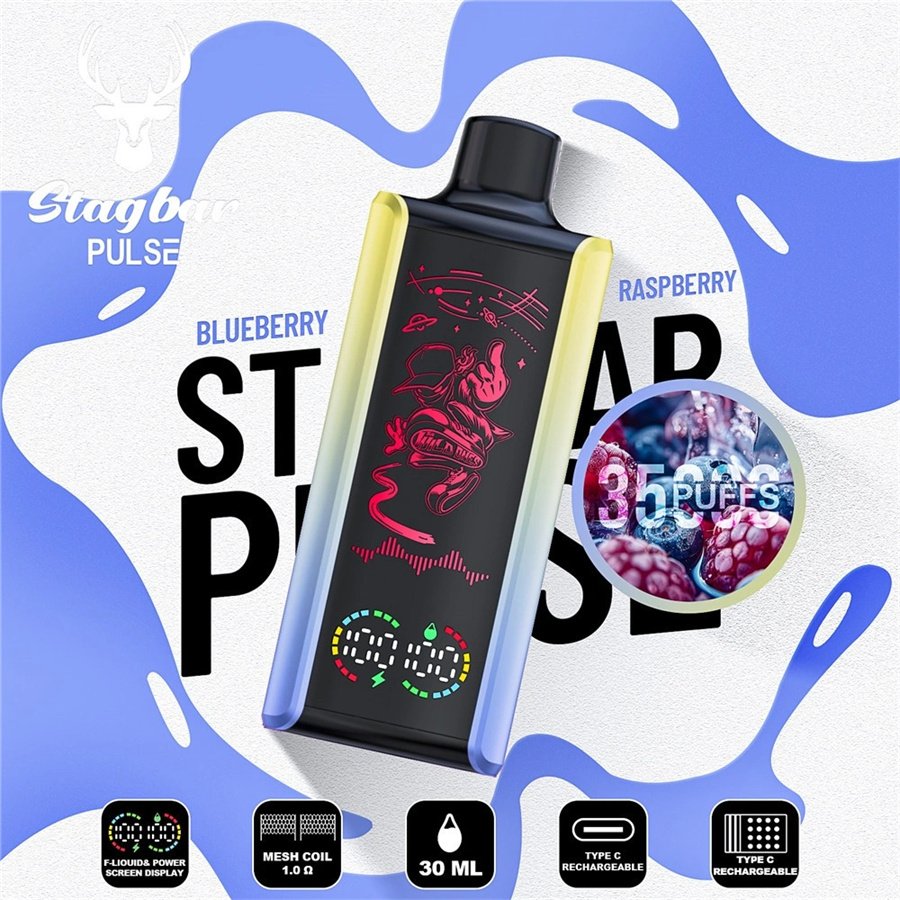 Stagbar Pulse 35K Puffs disposable vape with rechargeable battery and mesh coil. Long-lasting performance, smooth flavor, and premium vapor delivery.