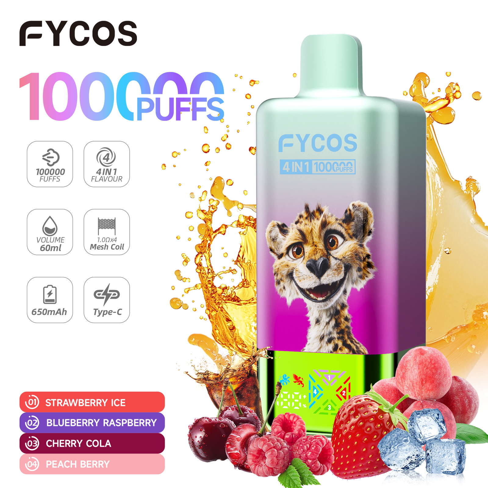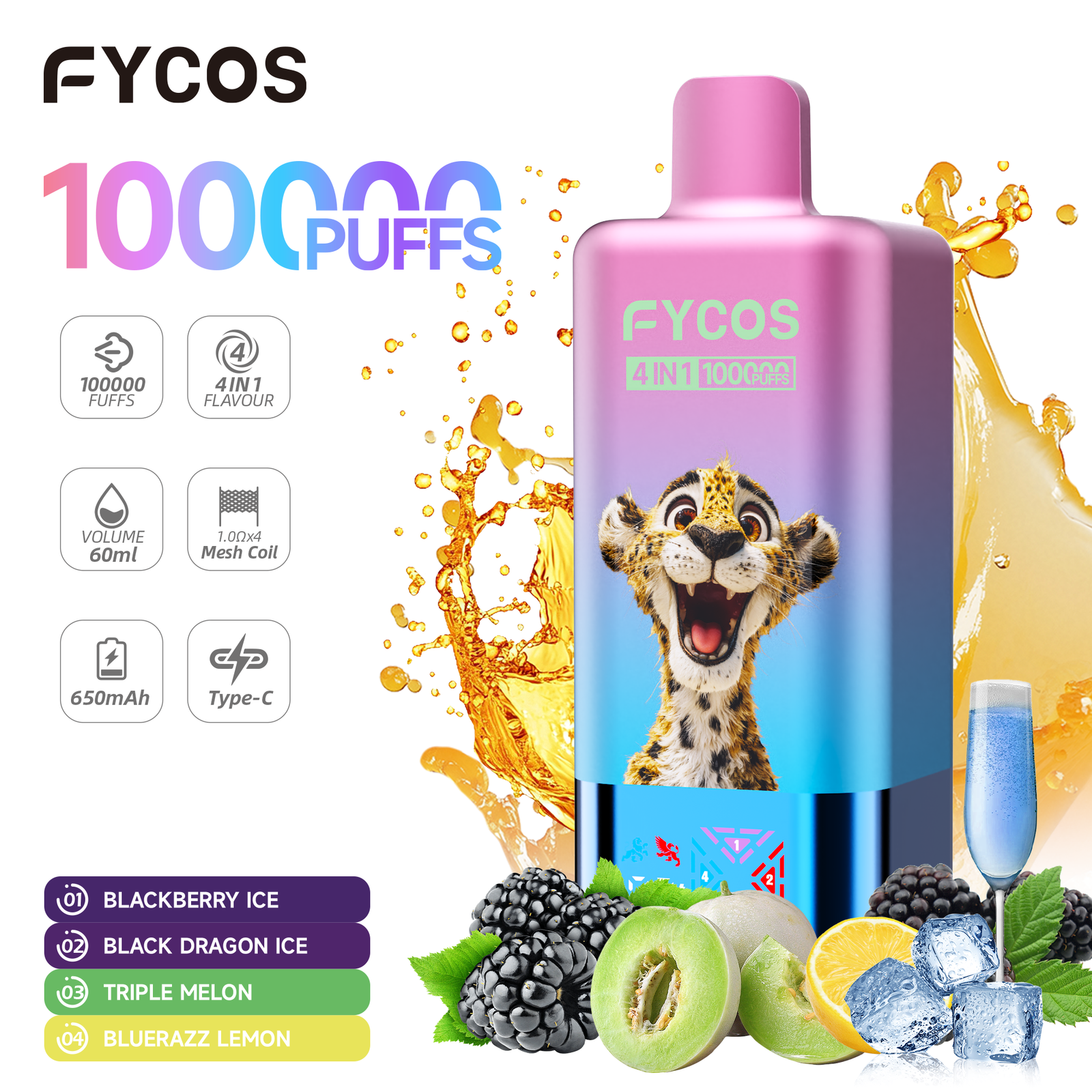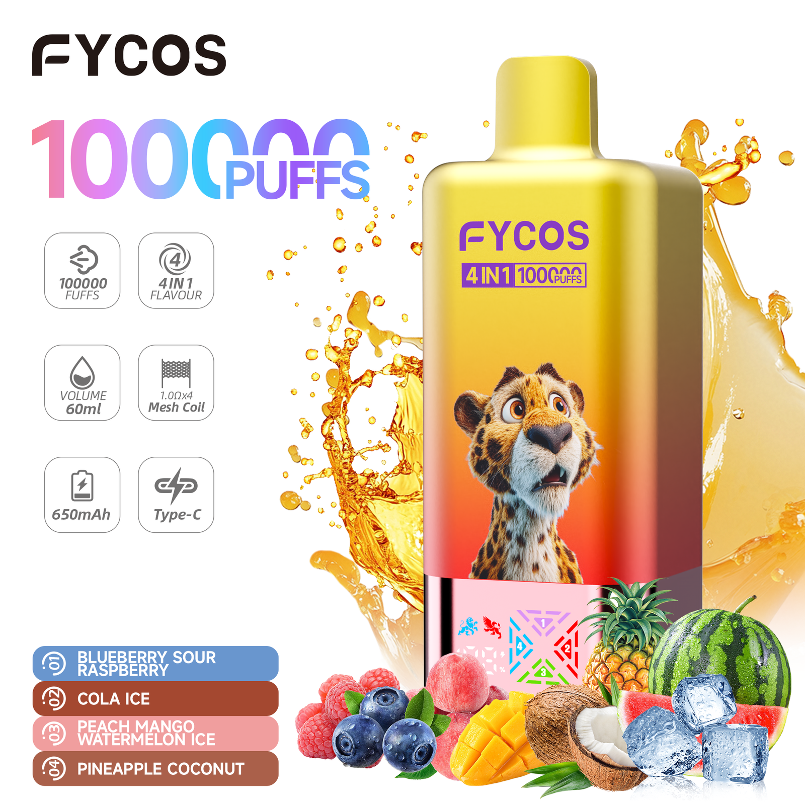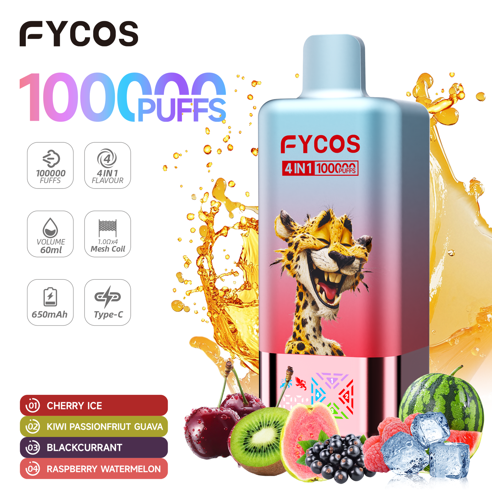 The FYCOS 100K delivers up to 100,000 puffs, making it one of the longest-lasting disposable vapes on the market.