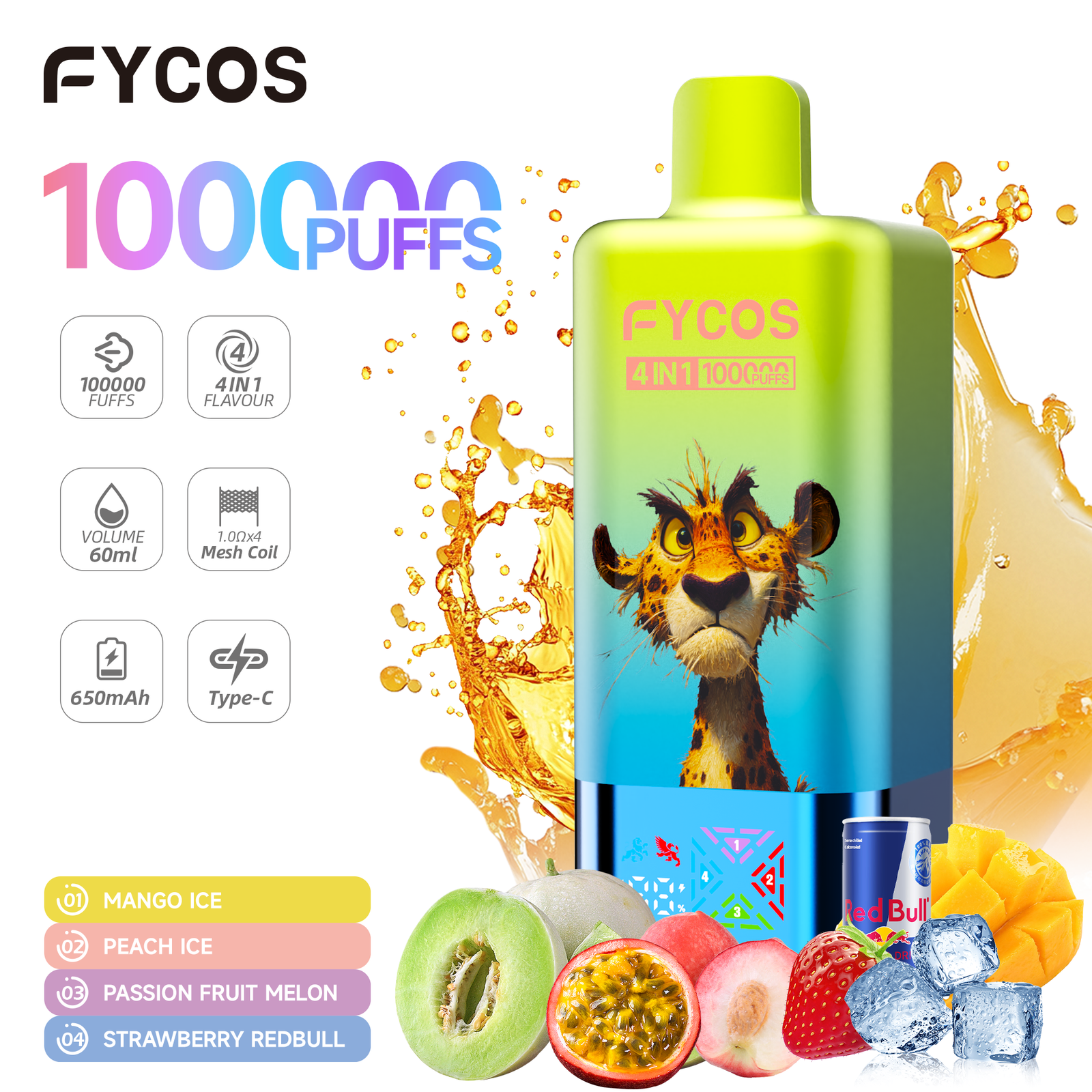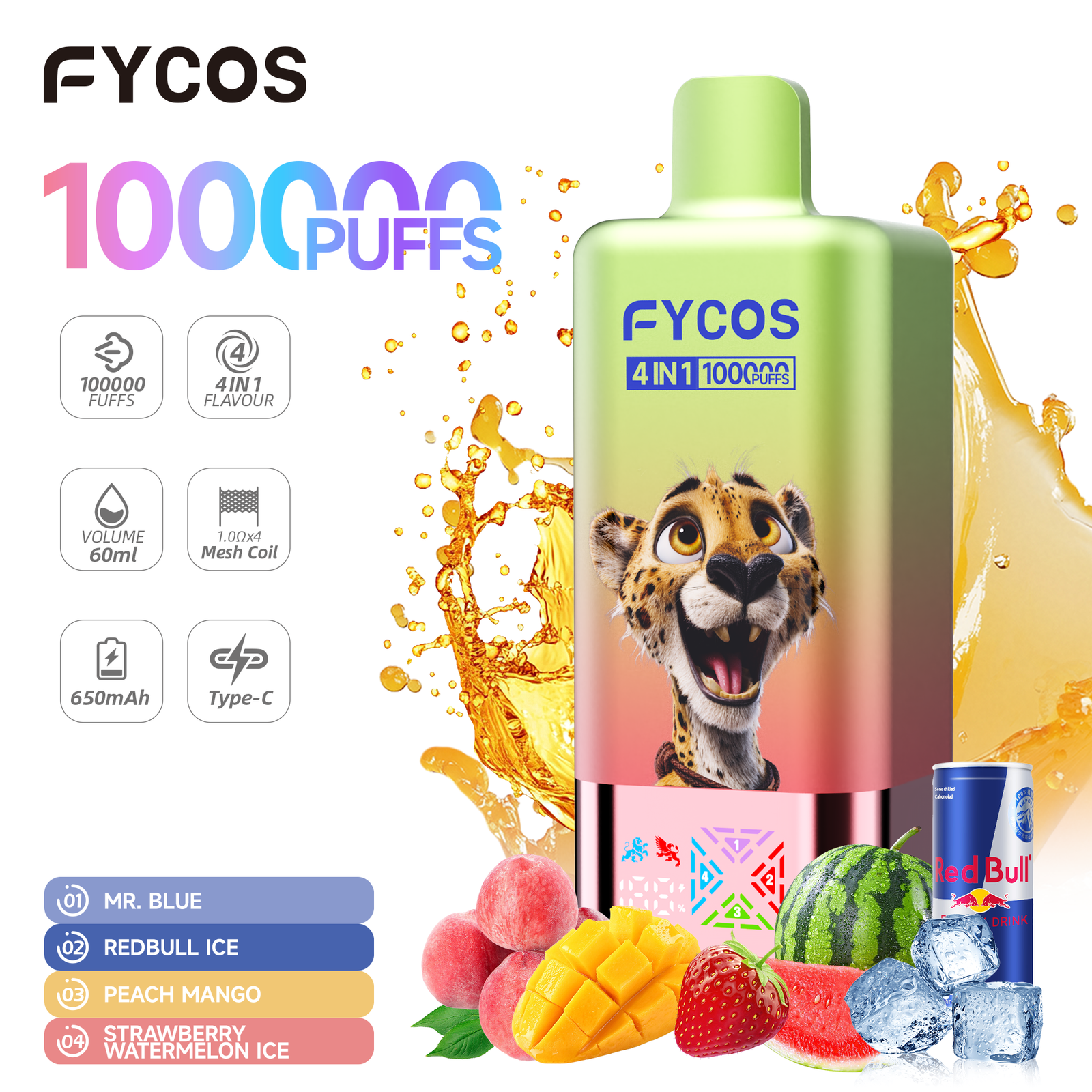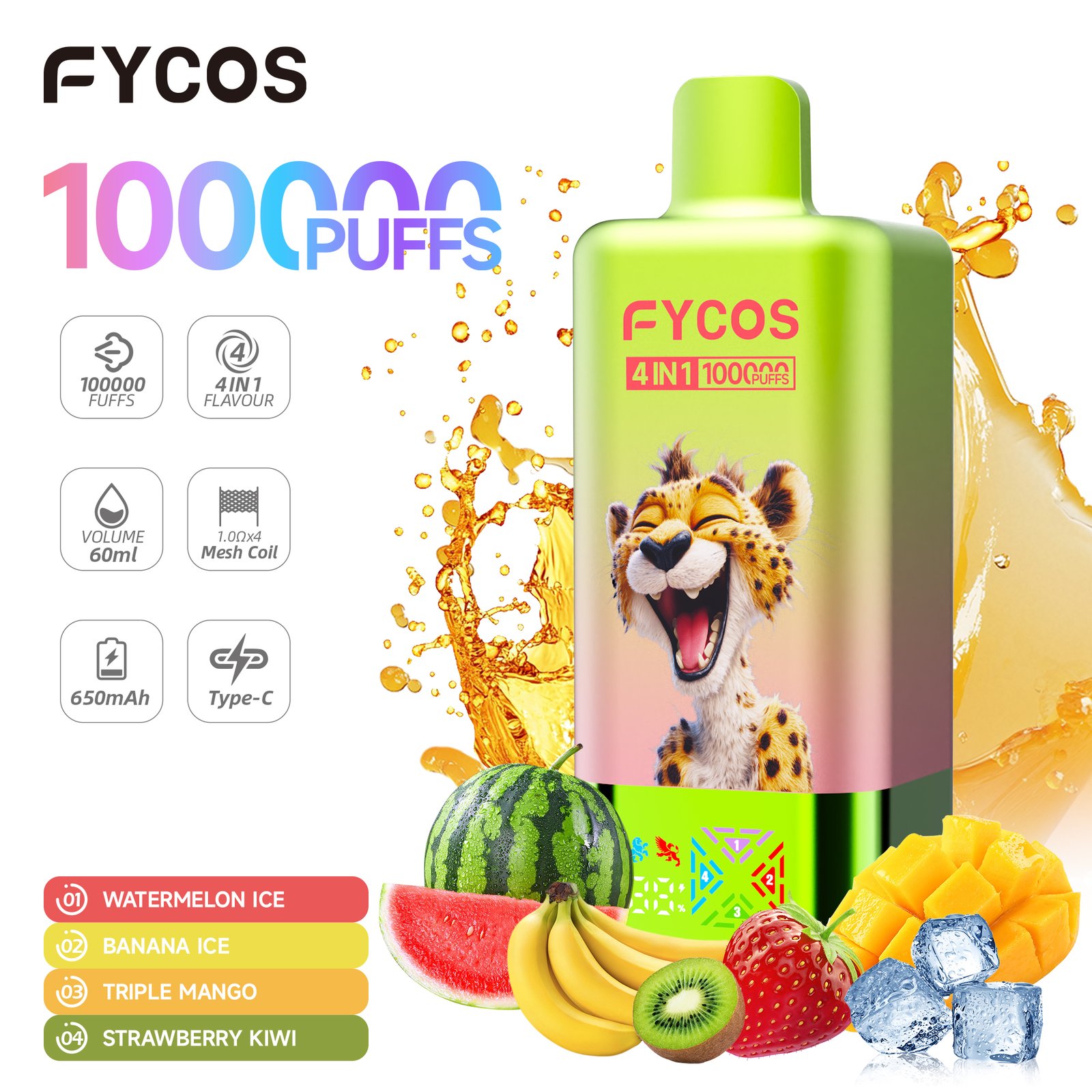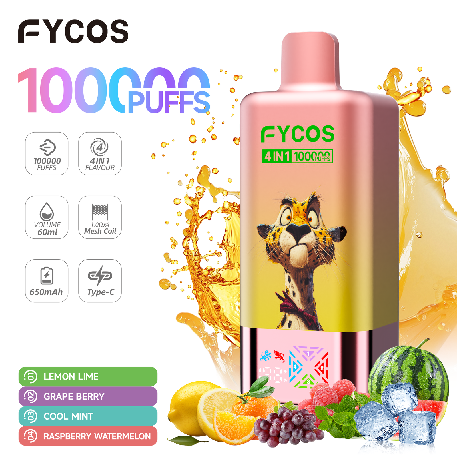 The FYCOS 100K delivers up to 100,000 puffs, making it one of the longest-lasting disposable vapes on the market.