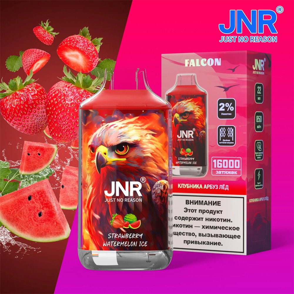 JNR Falcon 16000 Puffs Disposable Vape with mesh coil, rechargeable battery, and smooth long-lasting flavor. Perfect for wholesale and retail.