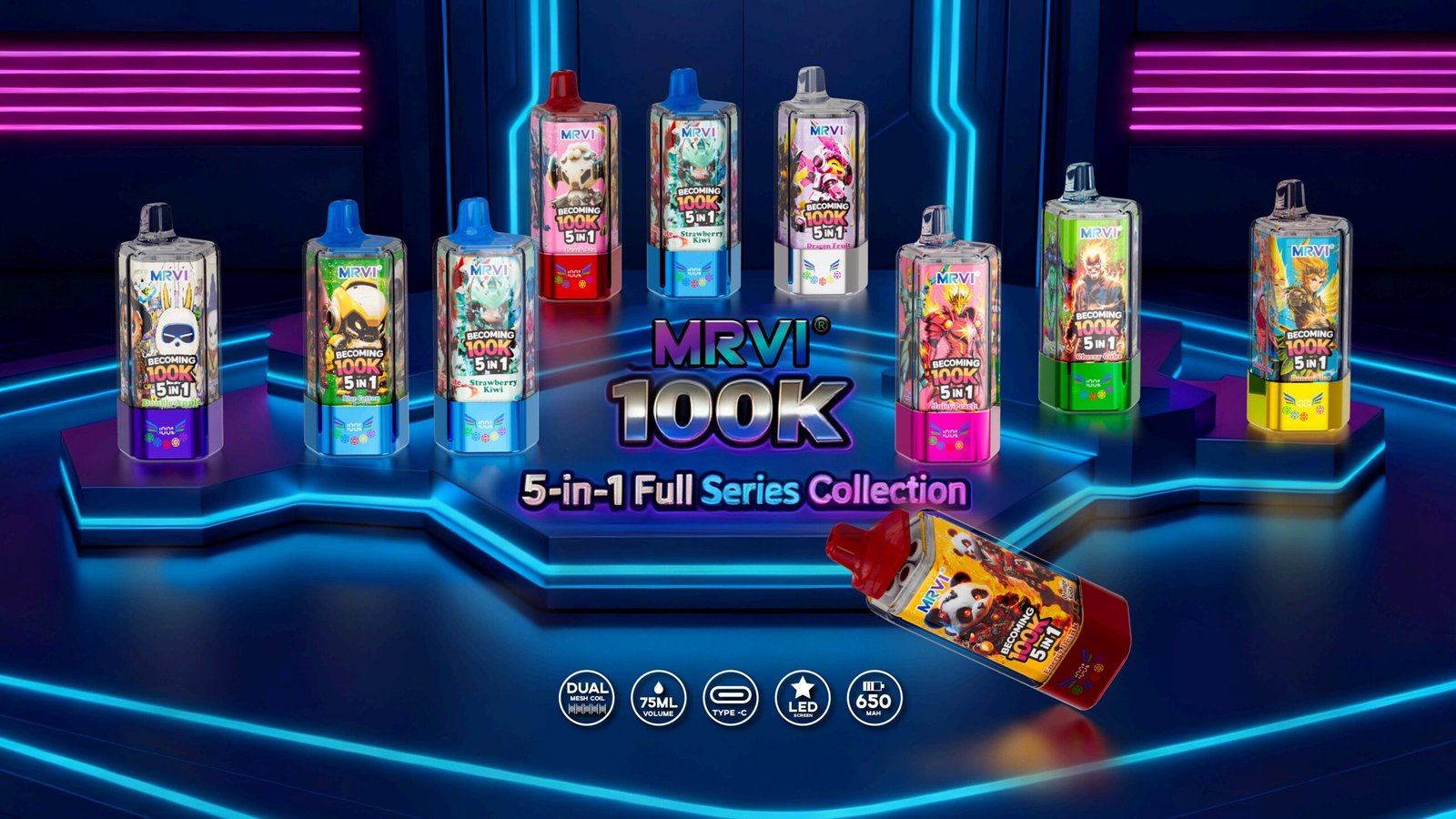 Explore the MRVI 100K Puffs Disposable Vape, featuring dual-mesh coils, long-lasting battery, rich flavors, and up to 100,000 puffs. Ideal for wholesale buyers and vapers seeking premium performance.
