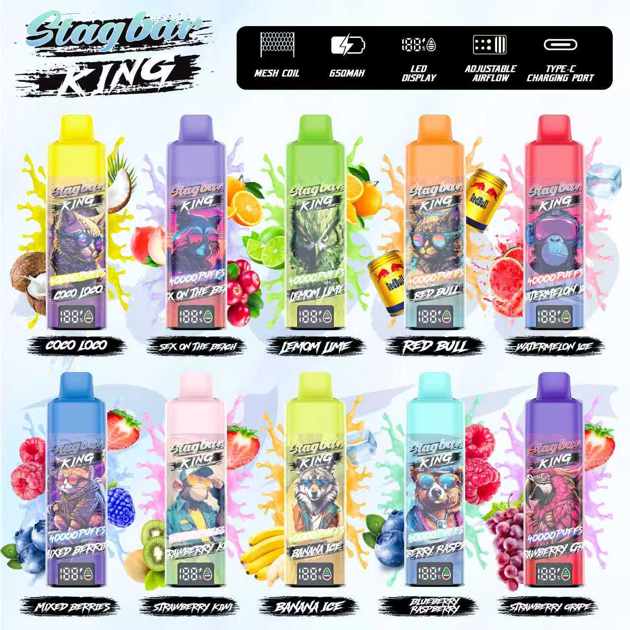 STAG BAR King 40K, STAG BAR disposable vape, 40K puffs vape, STAG BAR King wholesale, long lasting disposable vape, rechargeable disposable vape, mesh coil vape, high puff vape device