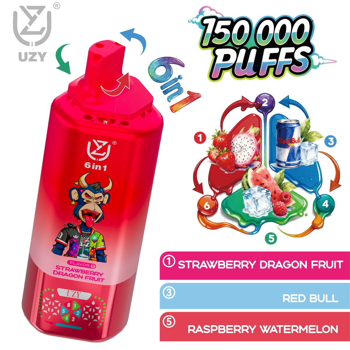 The UZY 6 IN 1 150K Disposable Vape redefines long-lasting vaping with an innovative multi-flavor system.