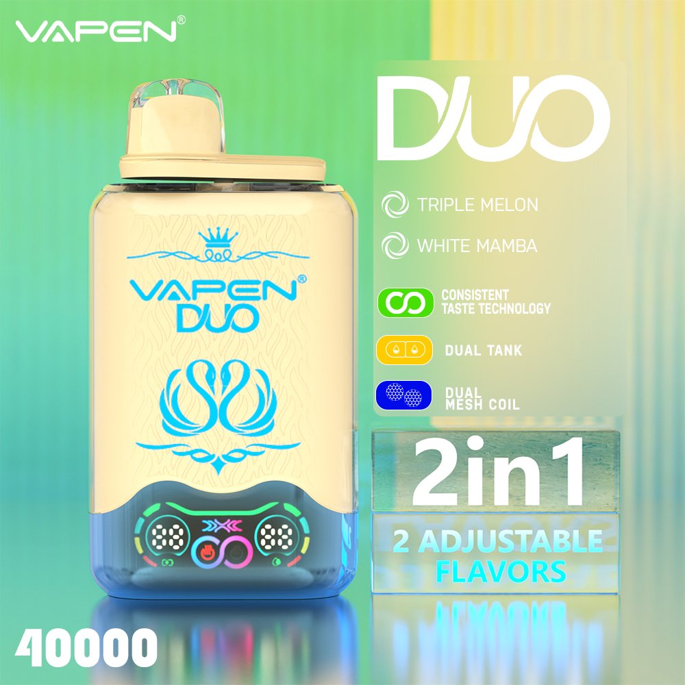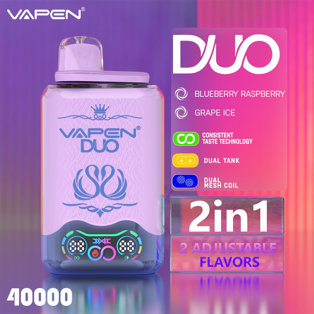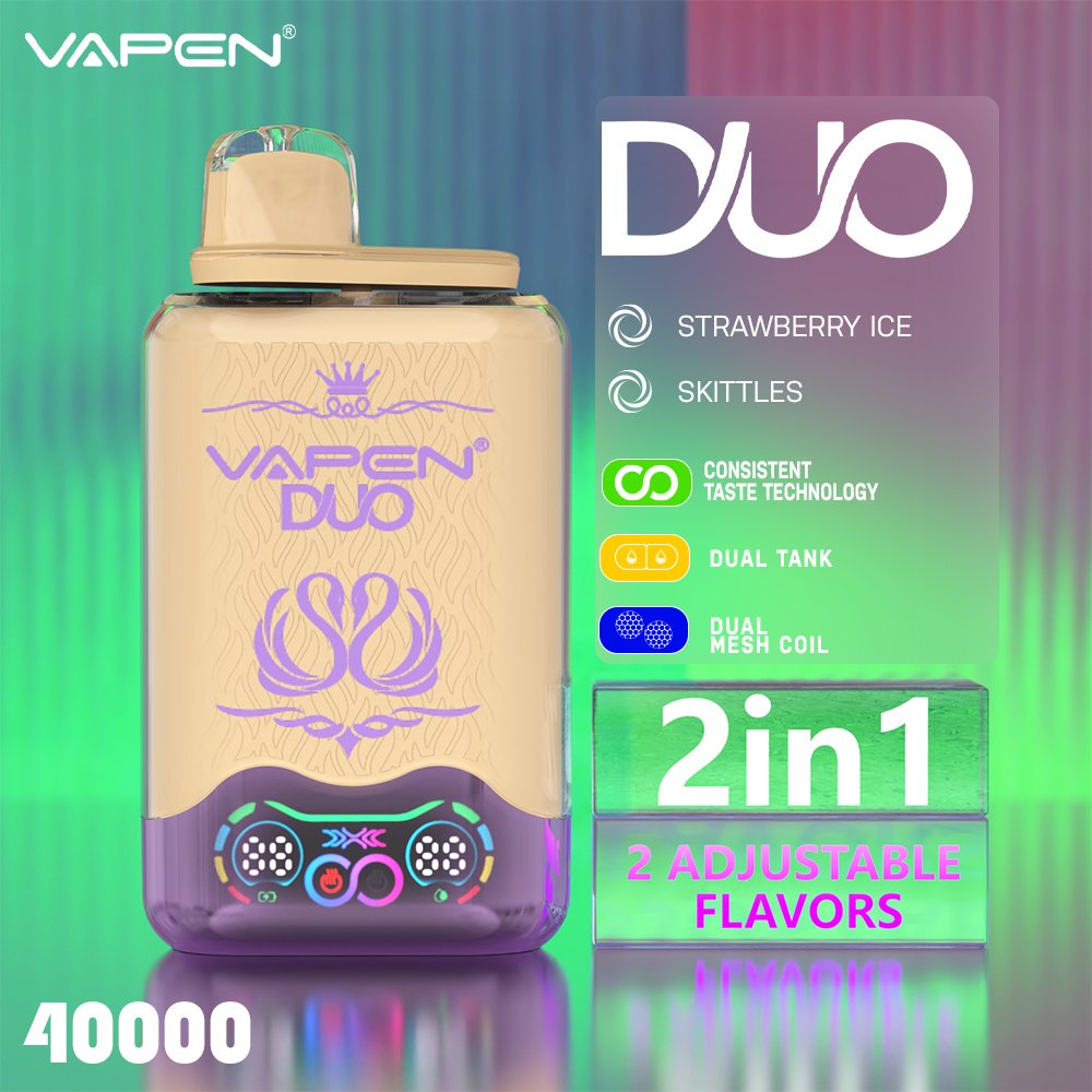 The VAPEN DOU 40K is a powerful dual-flavor disposable vape designed for extended performance and rich taste variety. With up to 40,000 puffs, it offers exceptional longevity, making it ideal for both casual and heavy users.